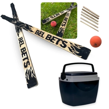 Jogo Tacobol Tacos de Bets Madeira + Bola + 2 Casinhas + Caixa Térmica 6 Litros para Lanches e Bebidas