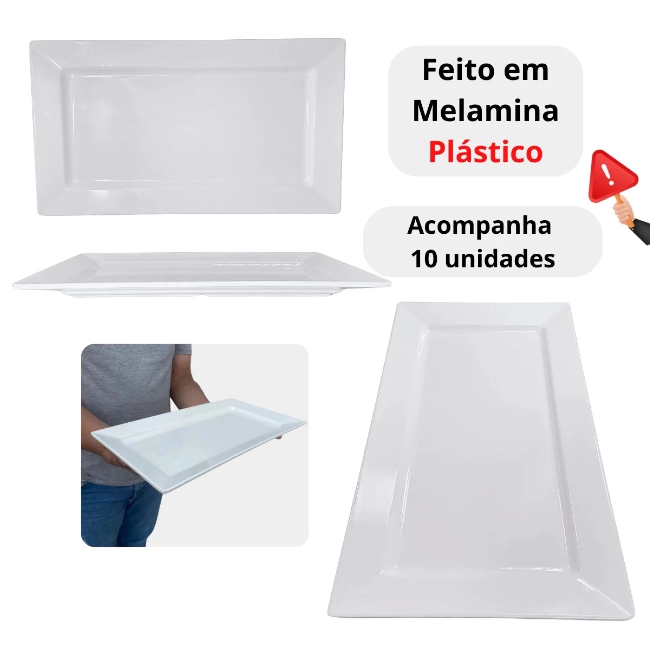 Kit 10 Travessas 40 Cm Retangulares para Buffet Sushi Restaurante em Melamina Plástico