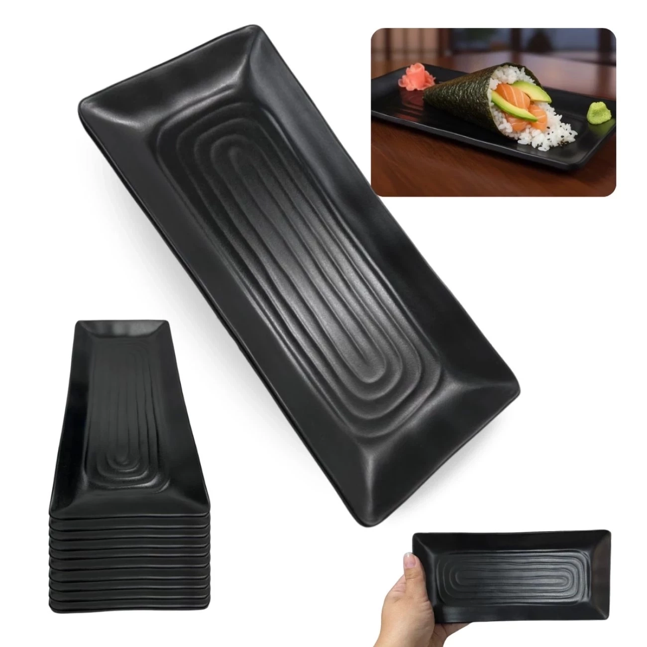 Kit 10 Travessas Rasa 21,5 Cm Prato Preto para Restaurante Comida Japonesa Buffet Sushi em Melamina