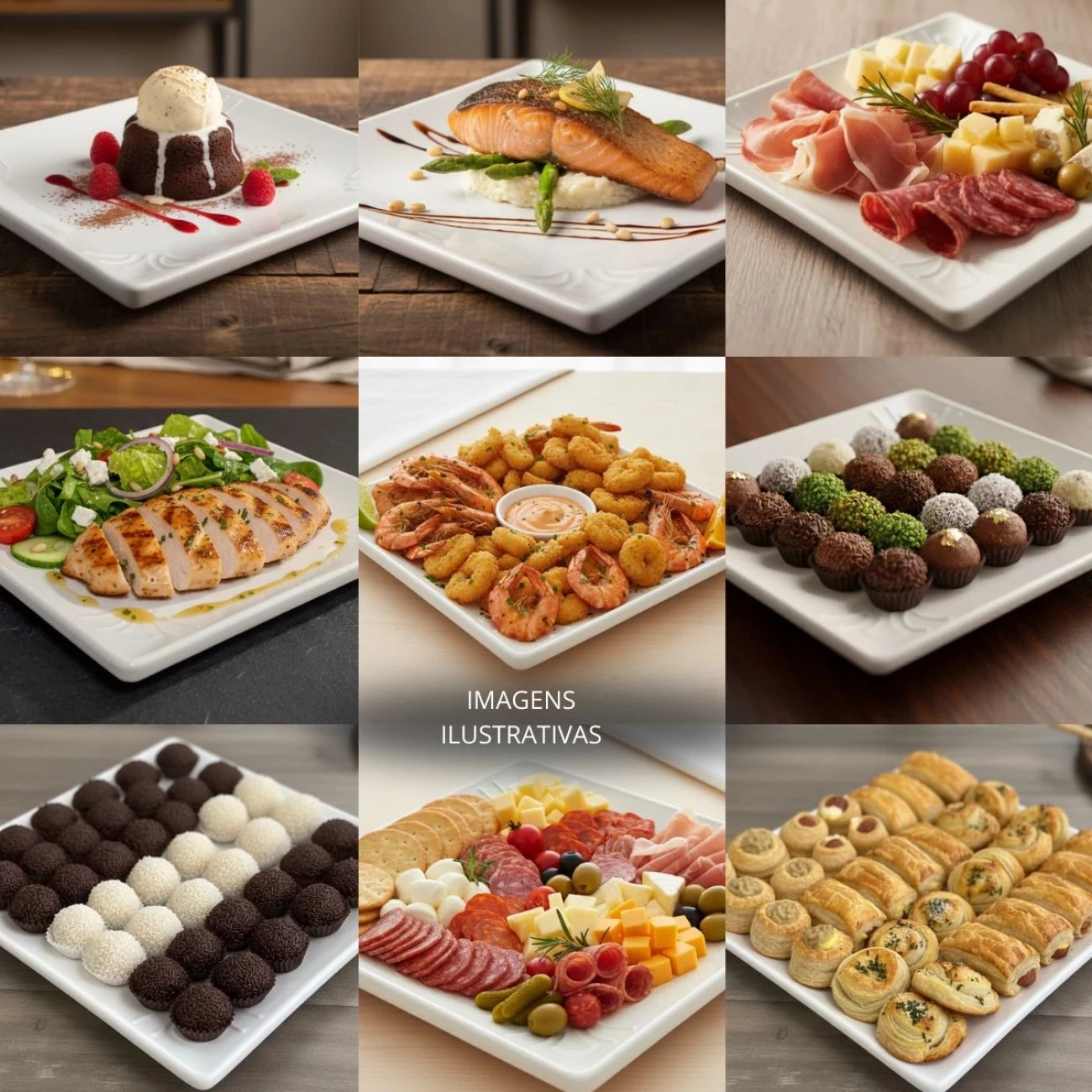 Especificações Prato Quadrado Raso 30,5 X 30,5 Cm Travessa para Porção Petisco Salgados Restaurante Saladeira Buffet: