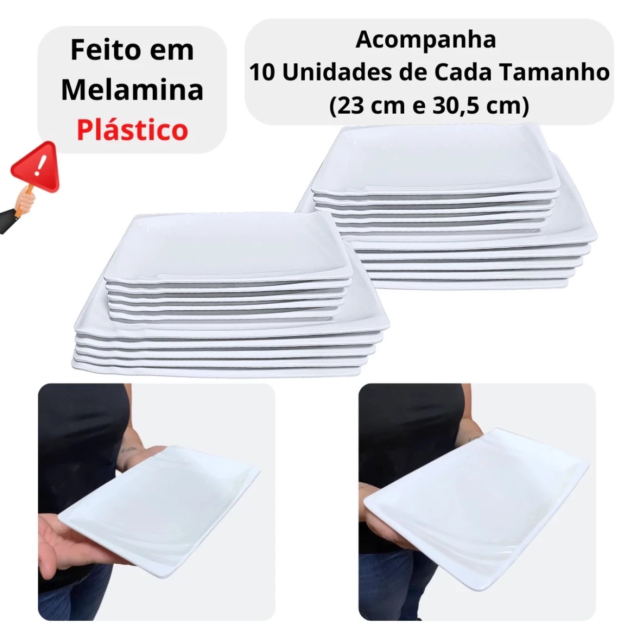 Kit 20 Pratos 23 Cm e 30,5 Cm (10 Und Cada) Travessas para Restaurante Buffet Sushi Finger Food Petisqueira