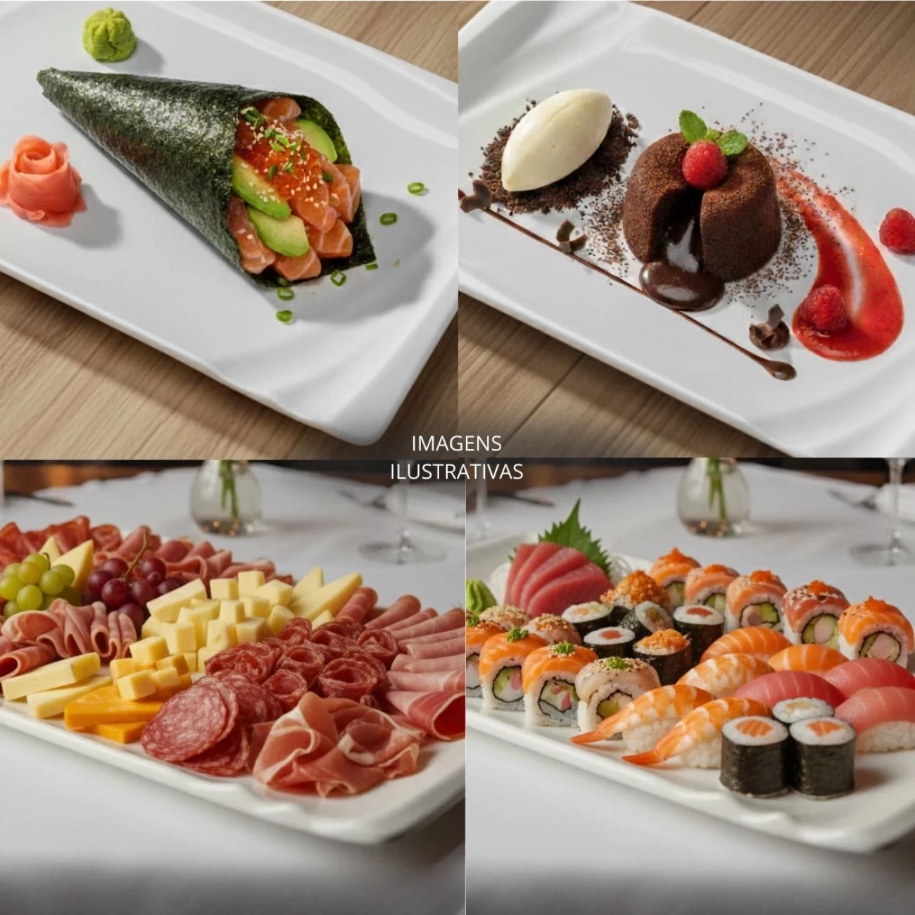 - Ideal para servir sushi, finger foods, petiscos, sobremesas e pequenas porções em buffets, vitrines, restaurantes e eventos, garantindo uma apresentação limpa, organizada e convidativa.