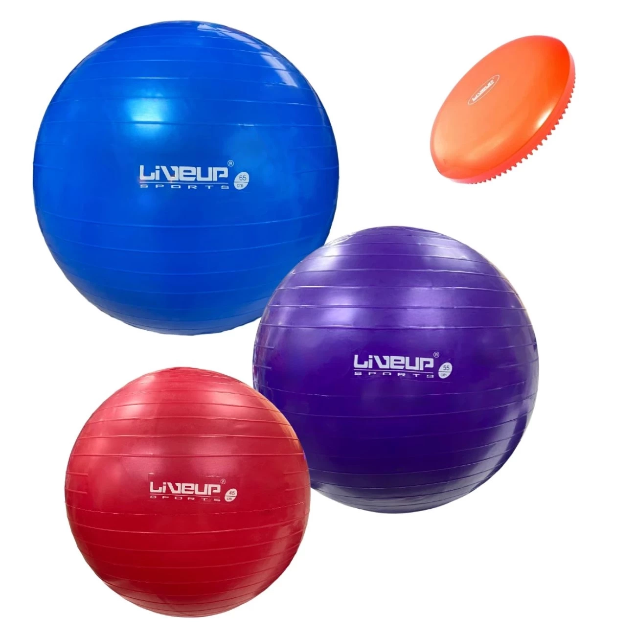 Kit 3 Bolas Suíças 45cm + 55cm + 65cm + Disco Inflável Pilates Yoga Treino Funcional Academia