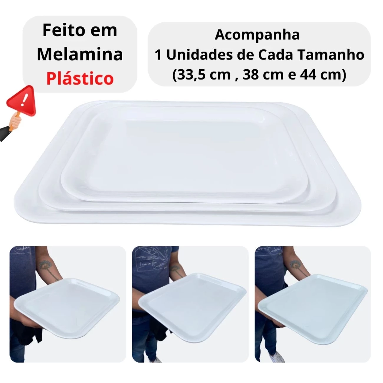 Kit 3 Travessas Bandejas 33,5 Cm, 38 Cm e 44 Cm (und) para Buffet Expositor Vitrine Padaria Confeitaria
