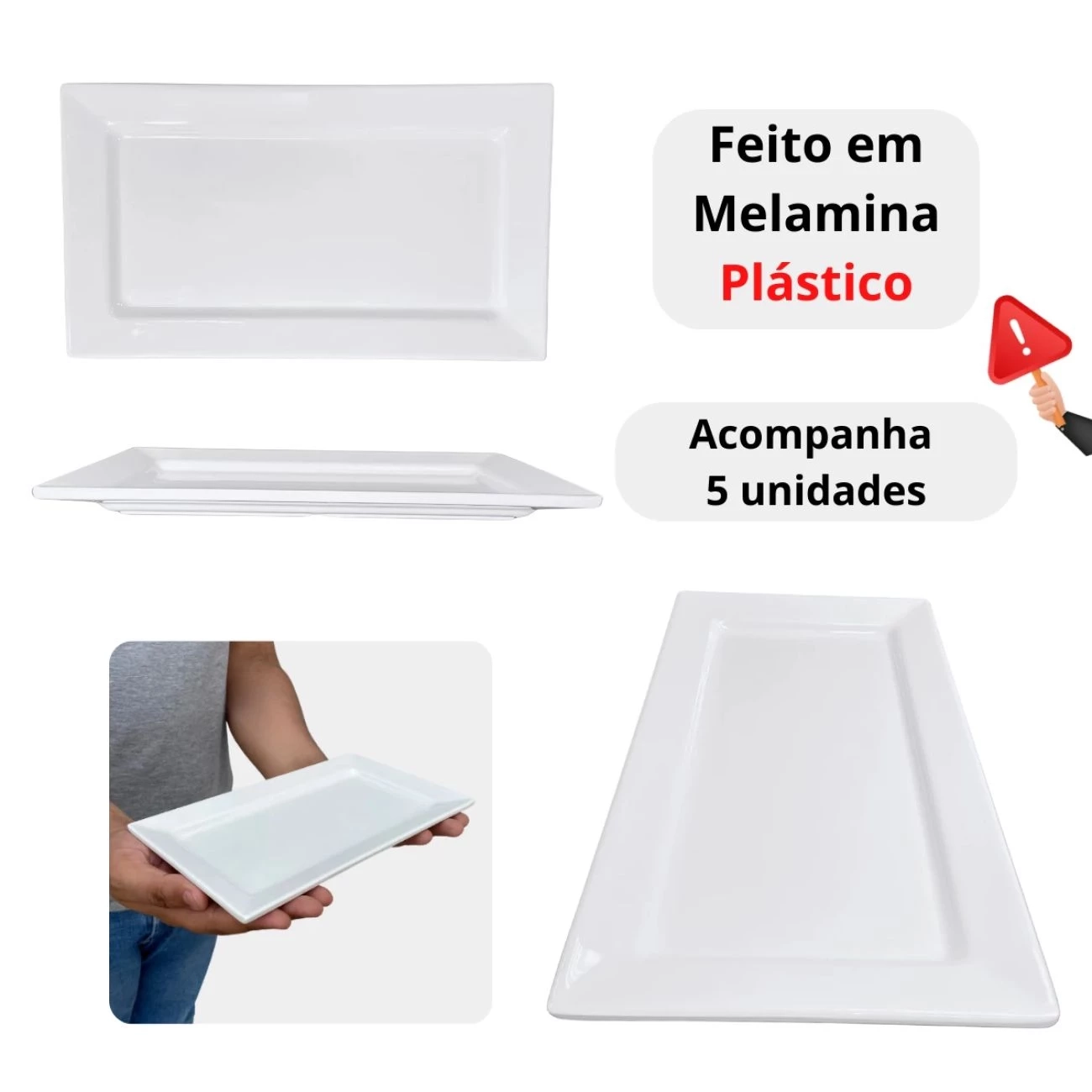:: 5 Unidade Travessa Retangular 25 cm em Melamina