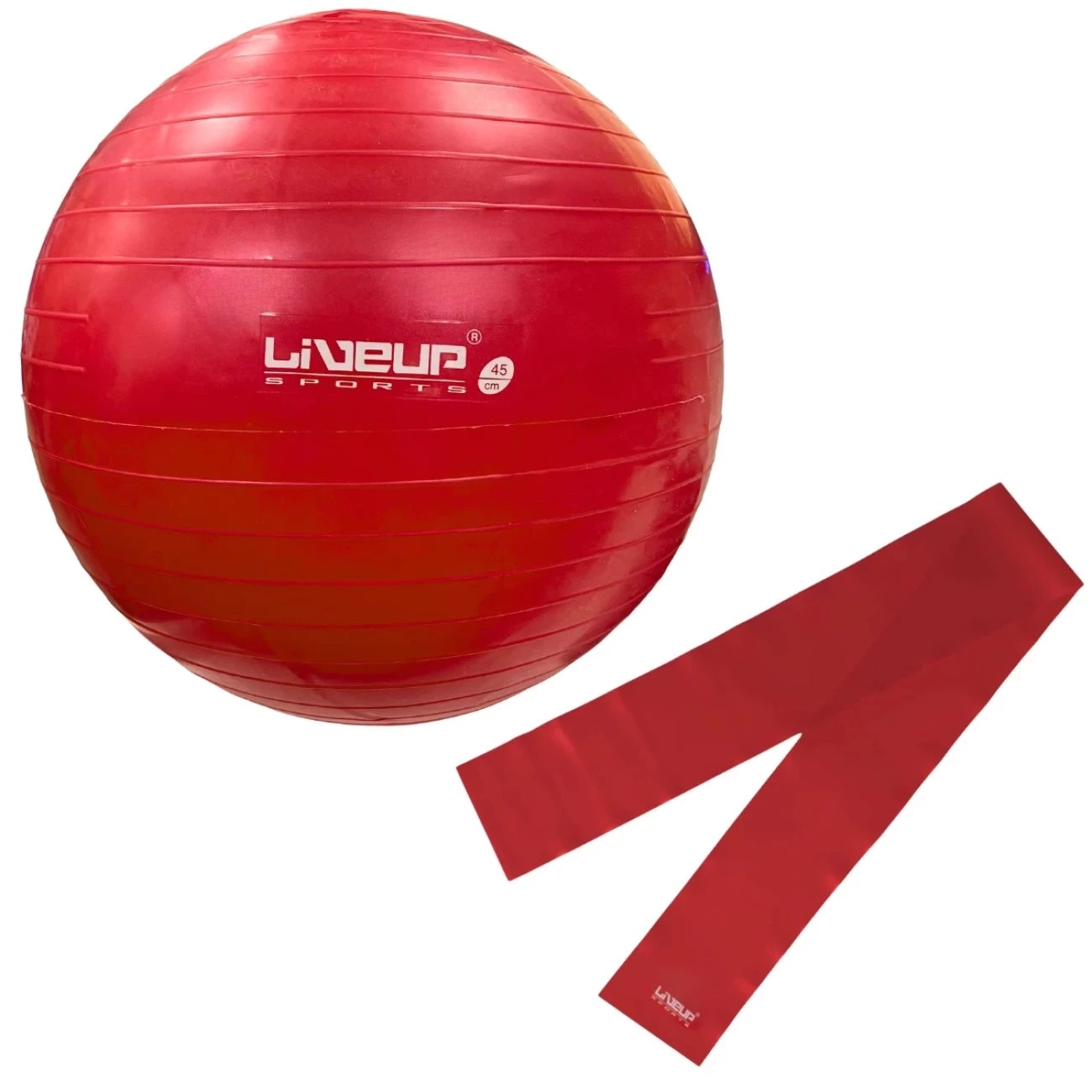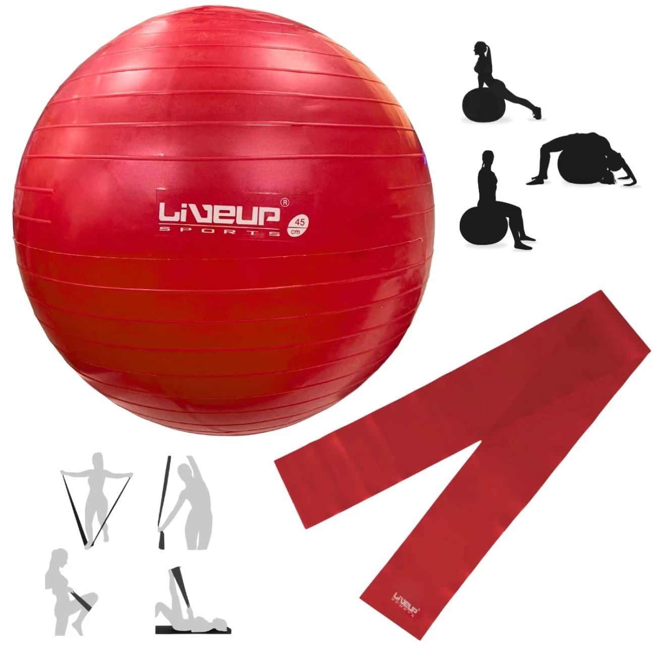 Kit Bola Suíça 45cm + Faixa Elástica Leve Vermelha Pilates Yoga Ginástica Alongamento Treino
