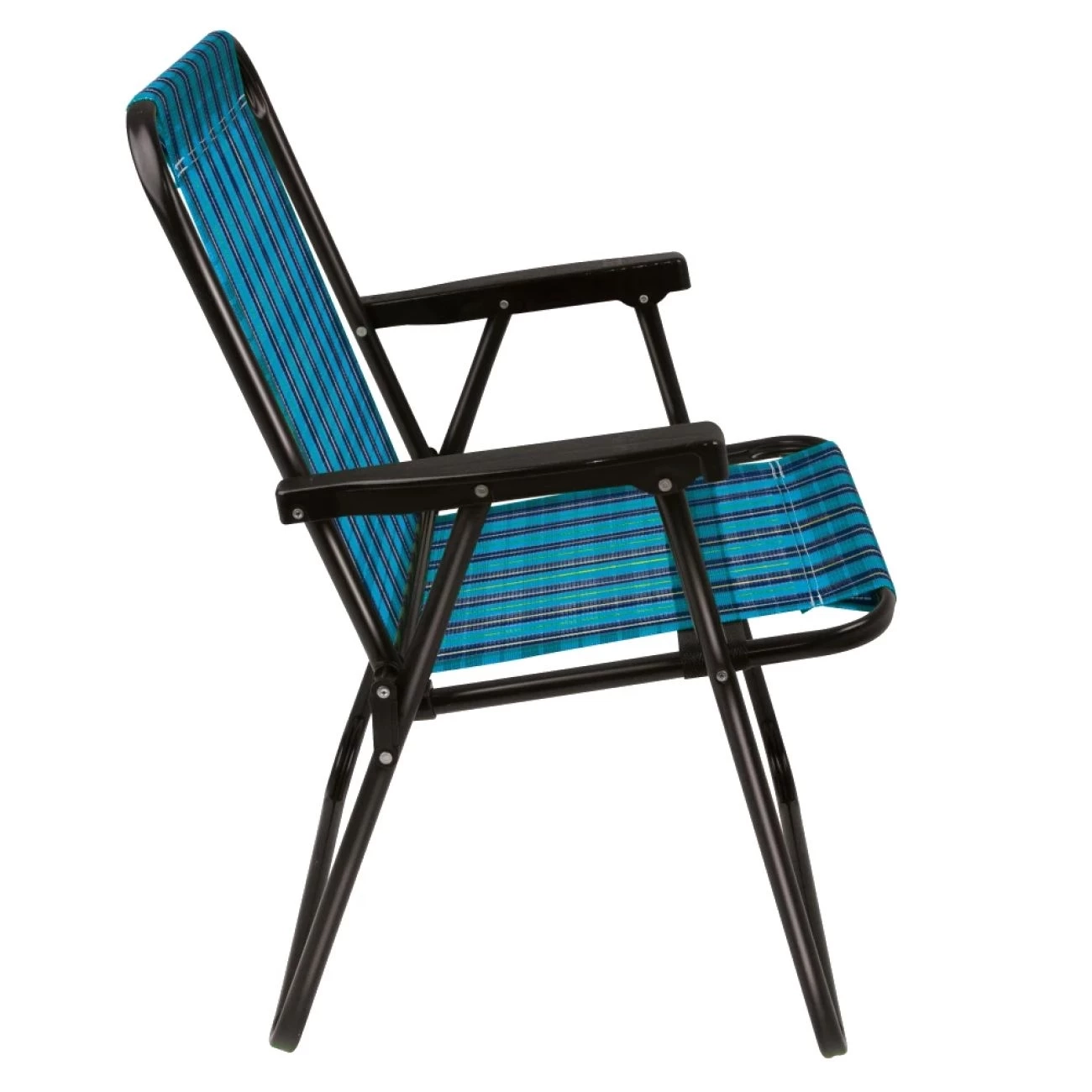 Especificações Cadeira de Praia Alta Dobravel Aço Xadrez Azul e Preta: