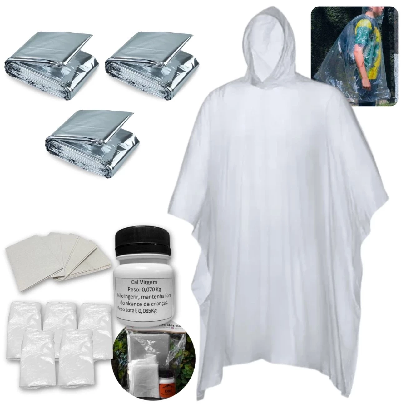 Kit Capa de Chuva Impermeável + Reposições para Shit Tube + 3 Mantas Termicas Essenciais Acampamento