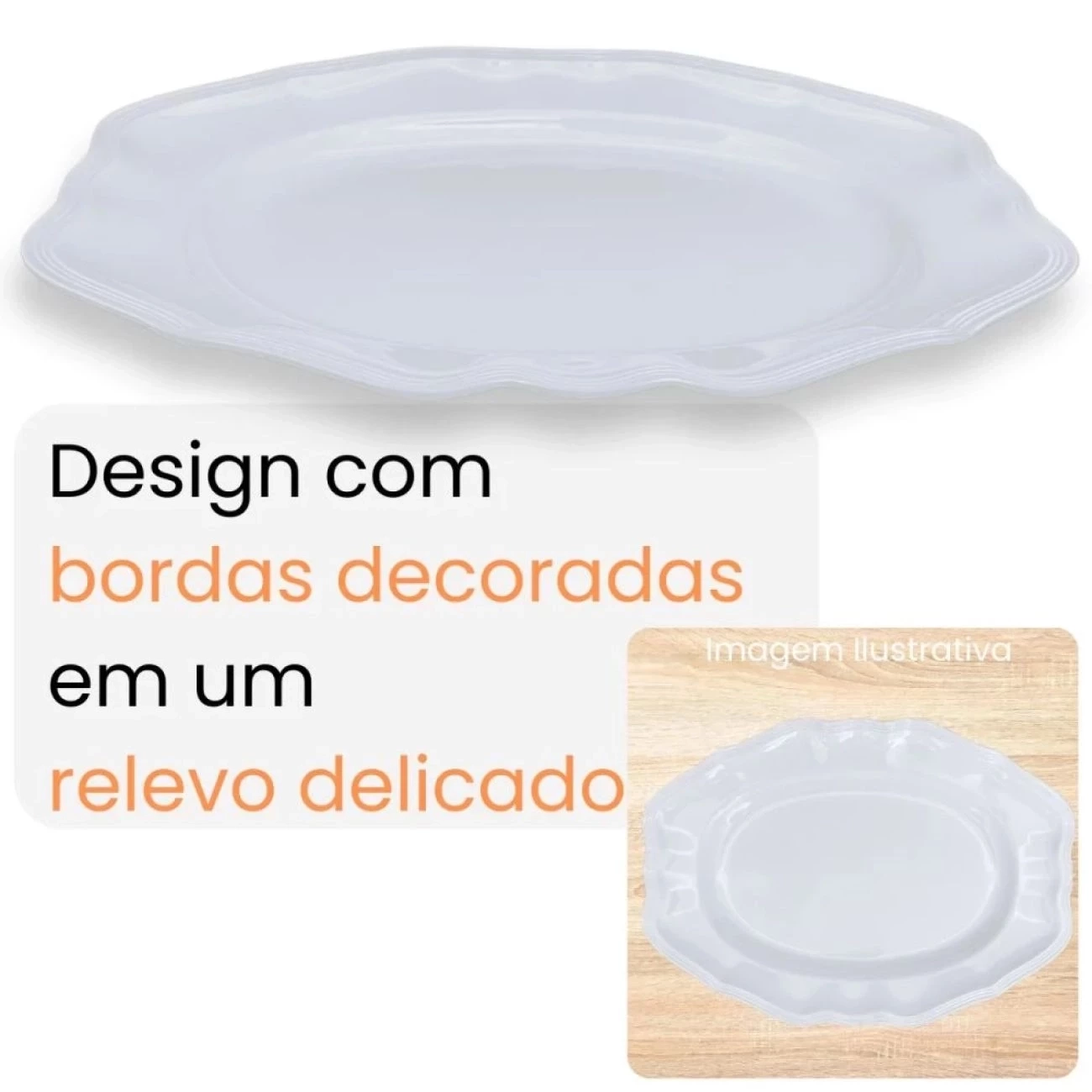 Especificações Travessa Branca Prato Raso 36 Cm Retangular Borda Decorada em Melamina / Plástico: