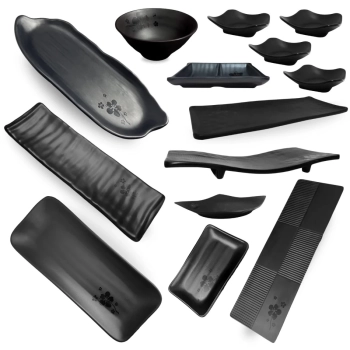 Kit Culinária Oriental 14 Peças Travessas Pratos e Molheiras em Melamina Kanpai Premium