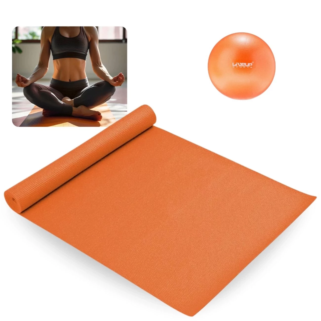 Kit Overball 25cm Laranja + Colchonete Antiderrapante Tapete Yoga 1,73m Treino Exercicios Pilates