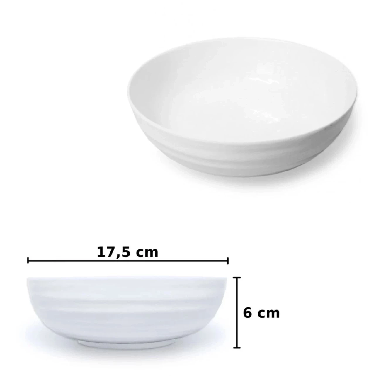 Especificações Tigela Redonda Estriada em Melamina 800 Ml Branca para Finger Food: