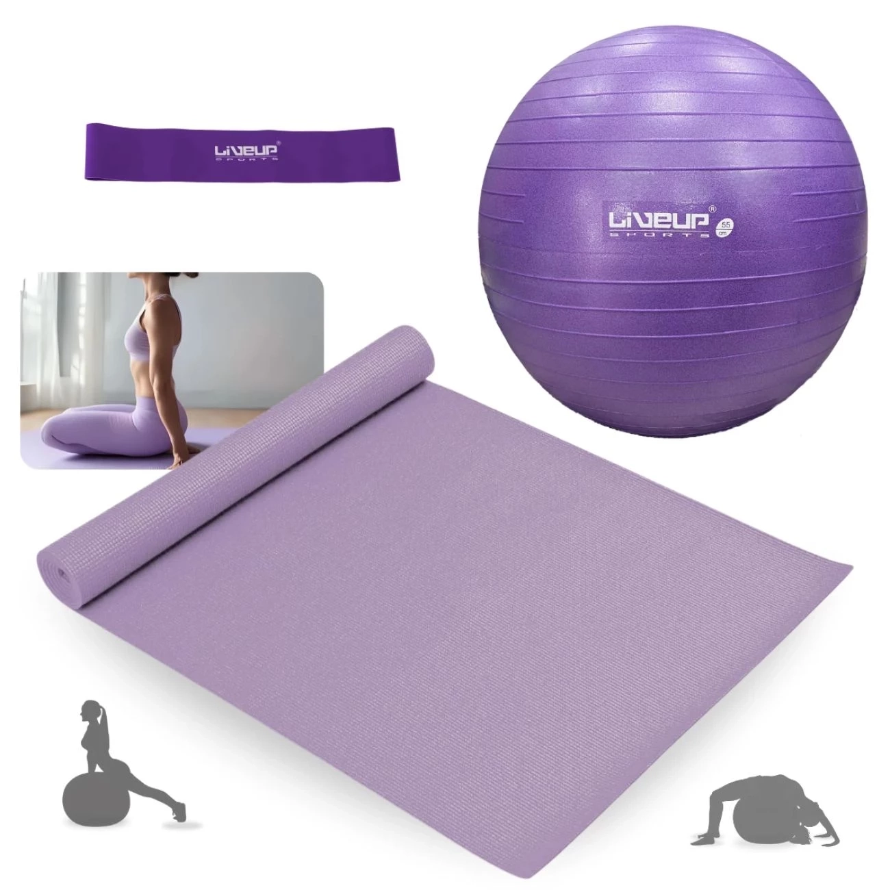 Kit Pilates Bola Suíça Roxa 55 Cm + Colchonete 1,73m + Mini Band Super Forte + Bomba Inflar Academia