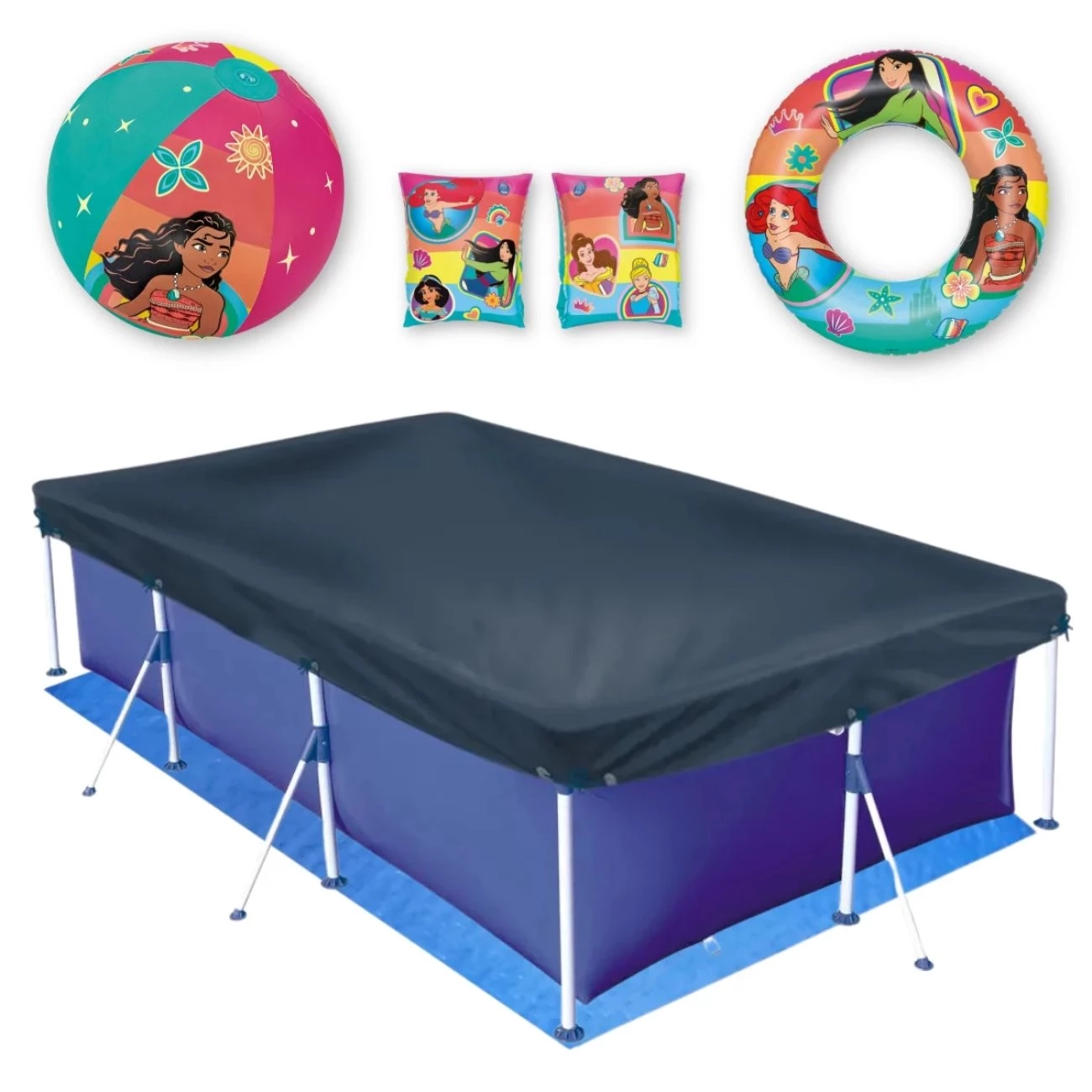 Kit Piscina 3700 L + Capa e Forro Mor + Boias e Bola Inflável Princesas