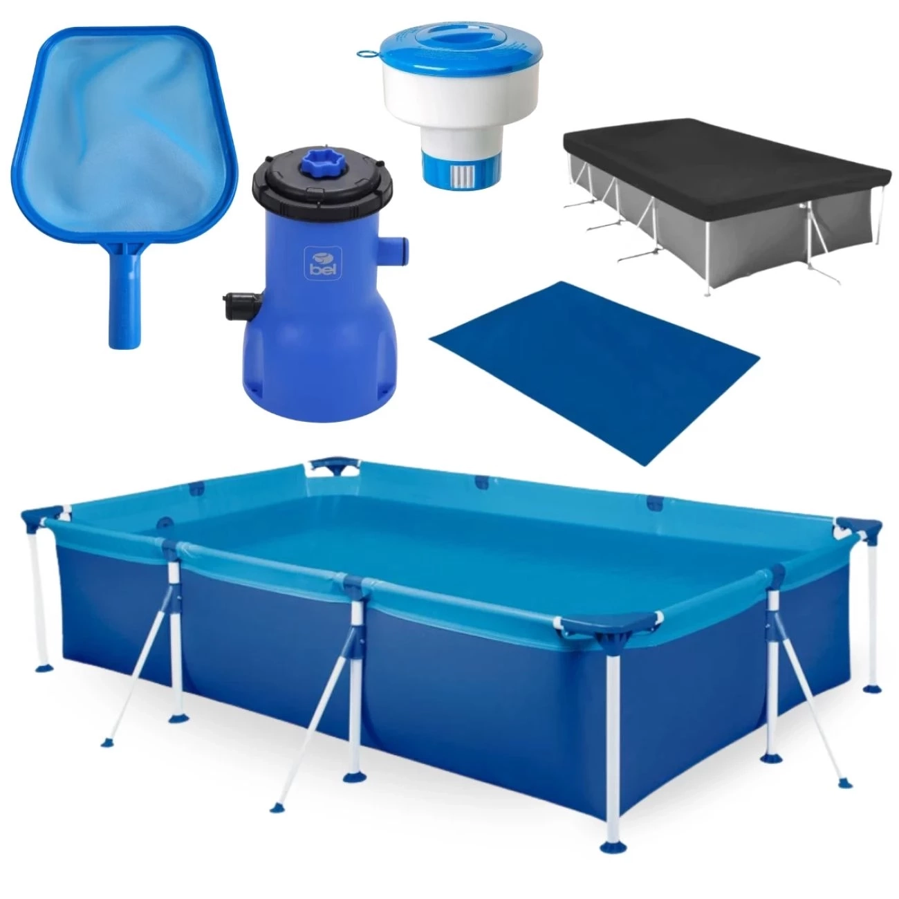 Kit Piscina 3700 Litros em Aço + Flutuador + Capa + Forro + Peneira + Filtro 220v 3028 L/H Bel