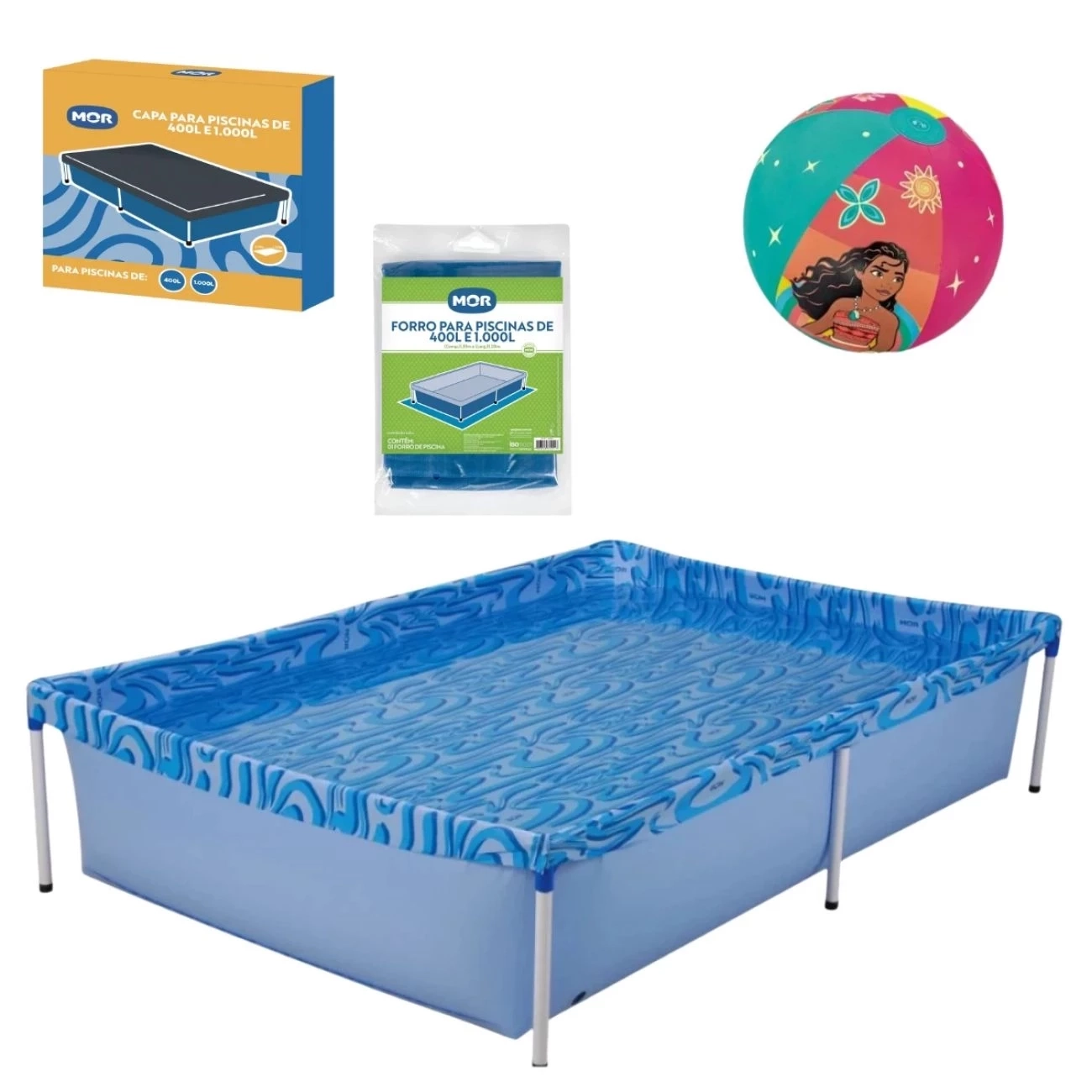 Kit Piscina de Armação Infantil 1000l + Capa + Forro + Bola Inflável Das Princesas