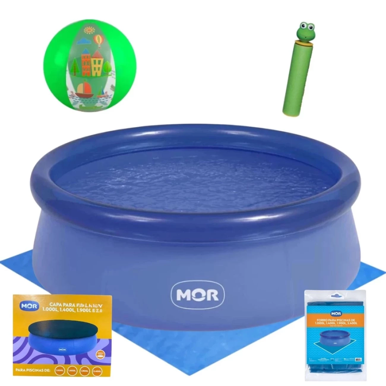 Kit Piscina Infantil 1000 Lts Redonda Inflavel + Capa e Forro + Bola 40cm + Lança Água