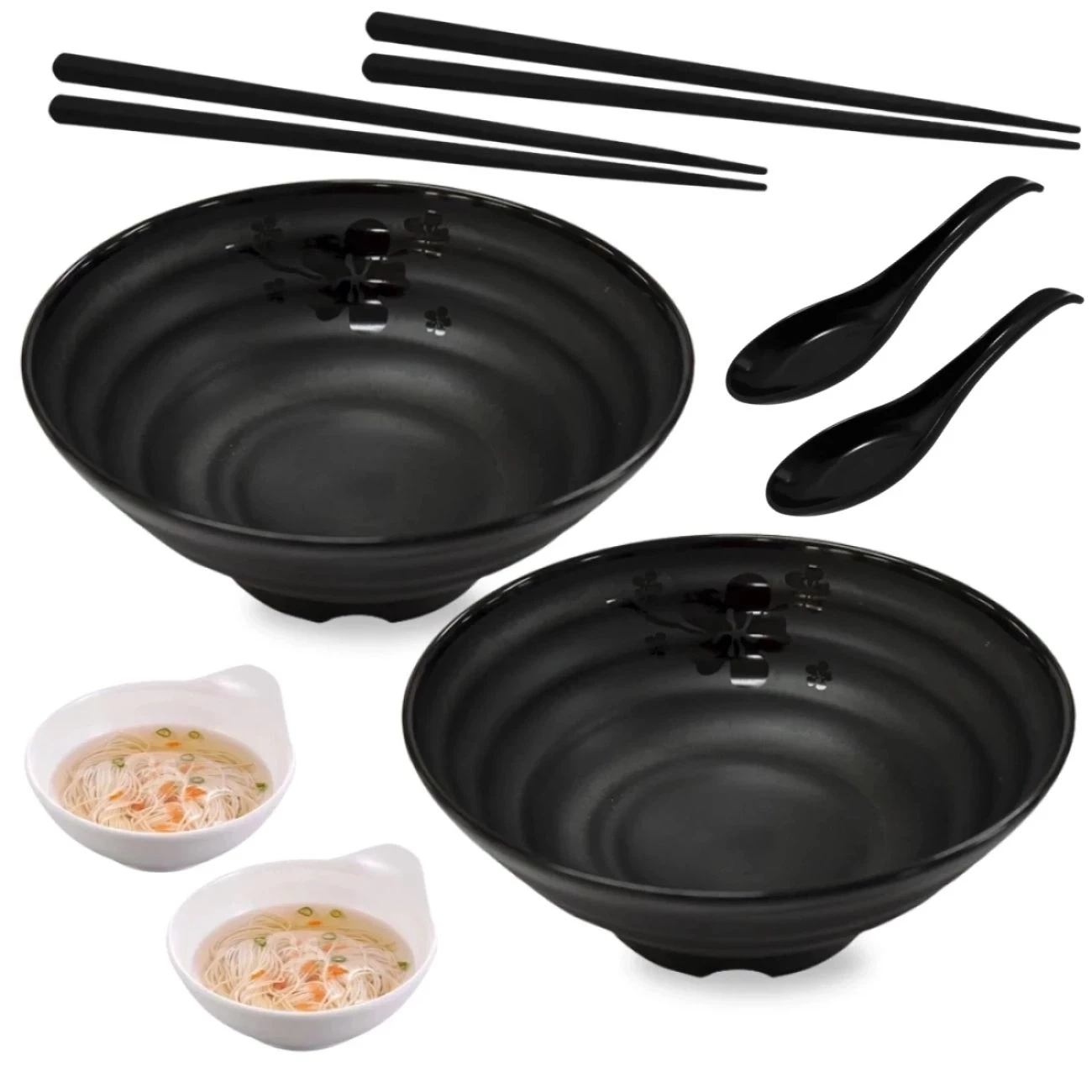 Kit Yakisoba com 2 Tigelas 1l / 21,5 Cm + 2 Molheiras + 2 Pares de Hashi + 2 Colheres