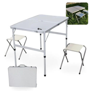 Mesa Dobrável com Banquetas em Alumínio Maleta Domo com Alça para Camping e Pesca