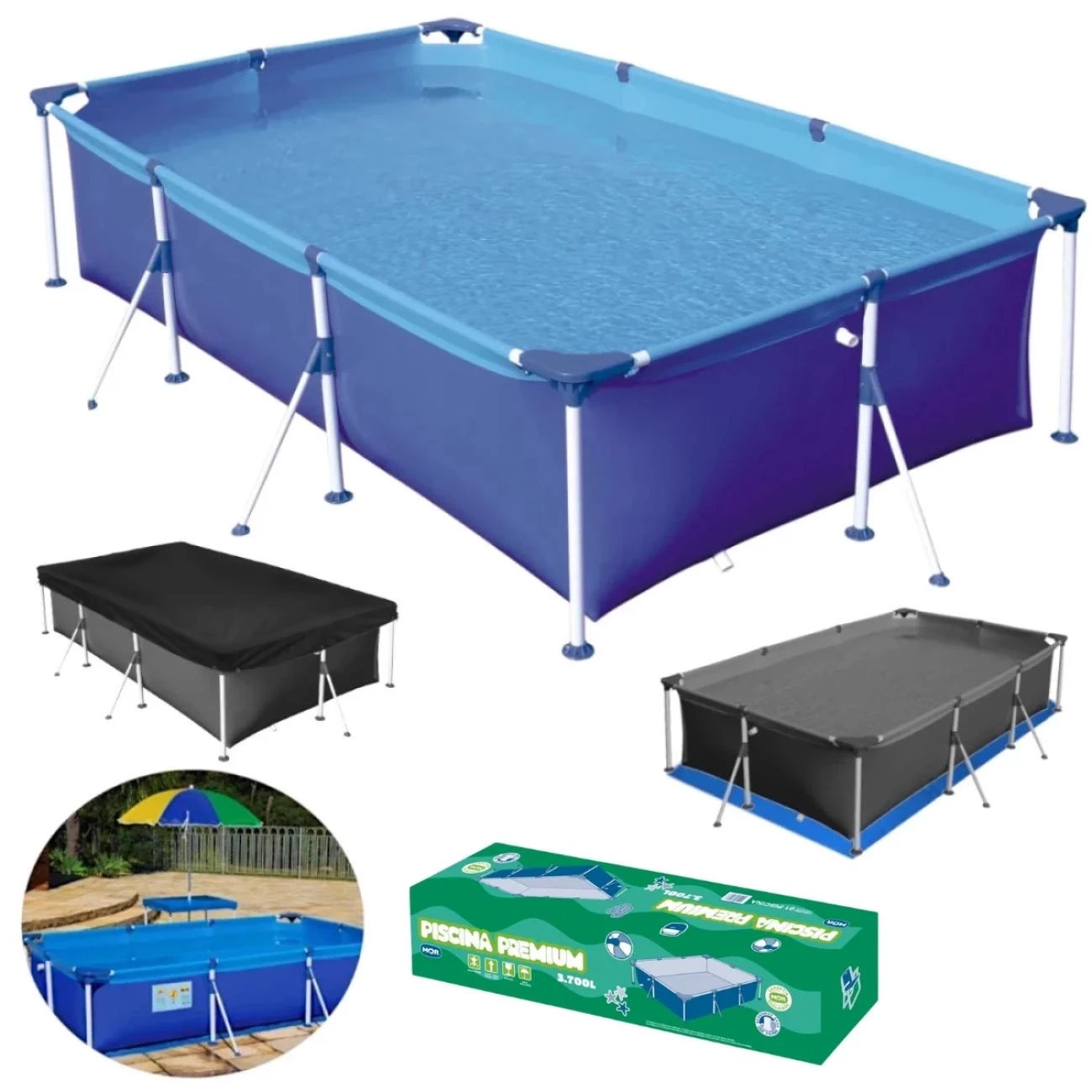 Piscina Mor Retangular em Aço 3700 Litros com Capa e Forro