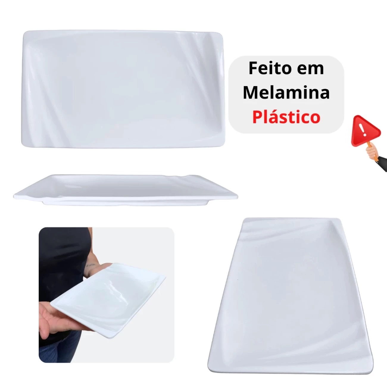 Possui formato retangular com detalhes em relevo nas bordas; Não deve ser utilizado em forno ou micro-ondas; A tonalidade pode variar conforme estoque disponível.; Não utilize o produto em temperaturas superiores a 40°C.