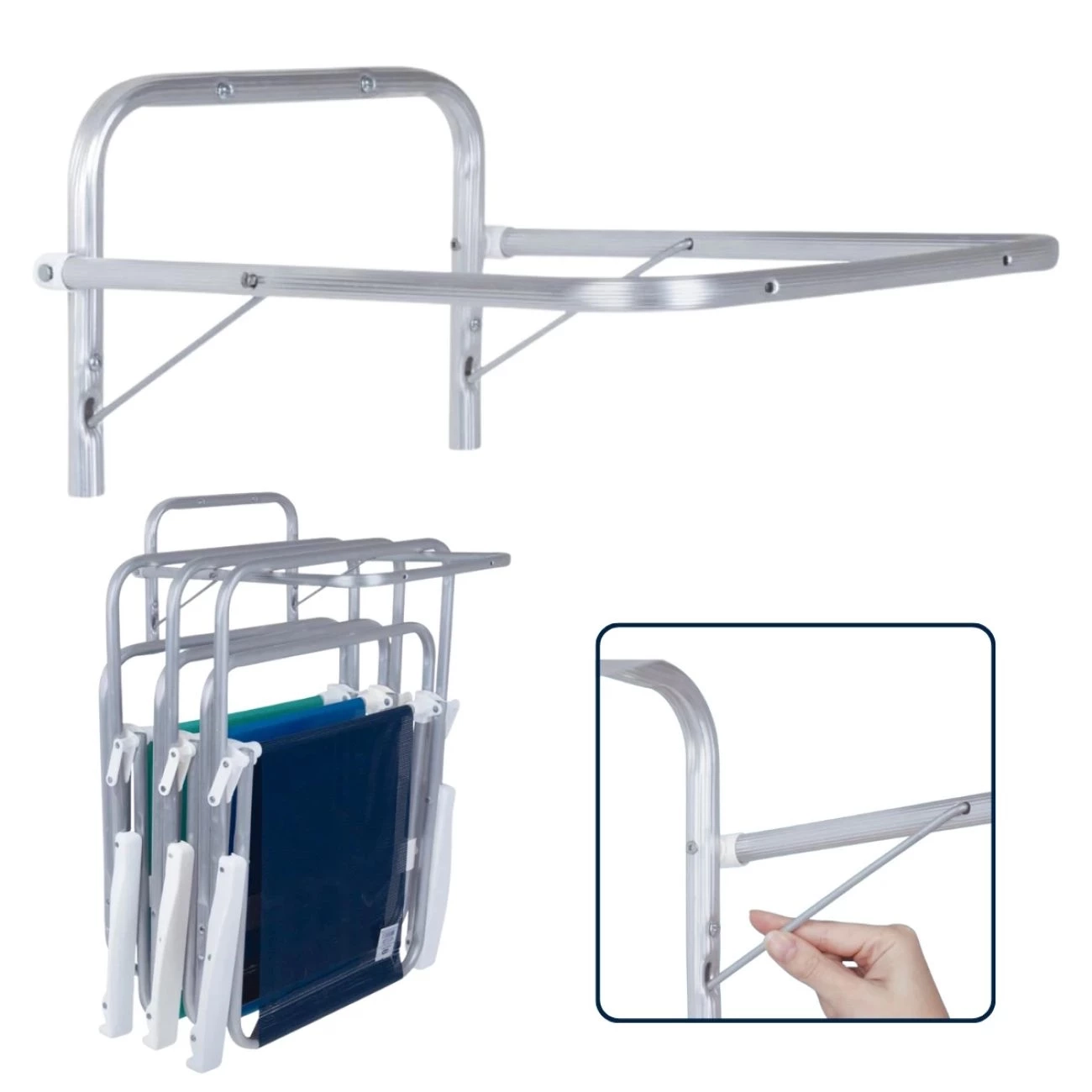 Suporte de Parede para Pendurar Até 7 Cadeiras de Praia Ou Acessórios em Alumínio